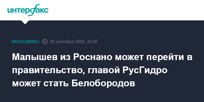 Малышев из Роснано может перейти в правительство, главой РусГидро может стать Белобородов