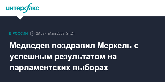Медведев поздравил Меркель с успешным результатом на только что завершившихся в ФРГ парламентских выборах. С обеих сторон была выражена уверенность, что в российско-германских отношениях будет продолжен курс на дальнейшее углубление партнерского сотрудничества на основе интенсивного и насыщенного диалога, тесного взаимодействия в вопросах глобальной политики и европейских делах.