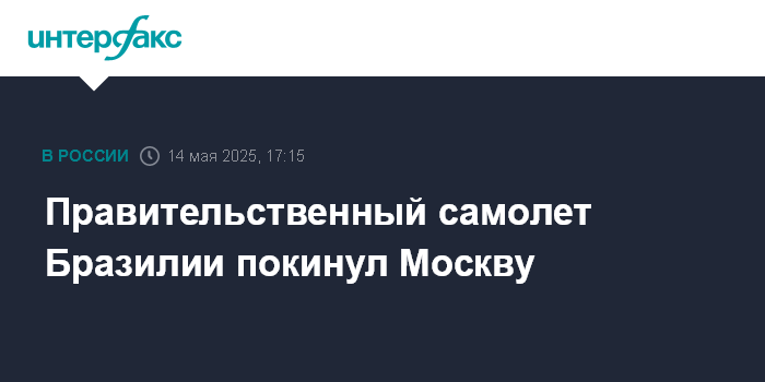 Москва. 14 мая. INTERFAX.RU - Приземлившийся днем в среду в Москве самолет бразильских ВВС, который используется для перевозки правительственных делегаций, вылетел из российской столицы, сообщили "Интерфаксу" в авиационных службах.