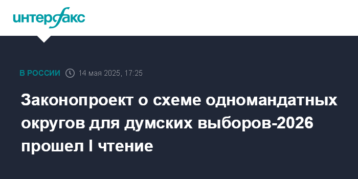 Москва. 14 мая. INTERFAX.RU - Госдума приняла в первом чтении законопроект о новой схеме одномандатных избирательных округов для проведения парламентских выборов в России в 2026 году, предполагающую, в том числе, их создание в новых регионах.