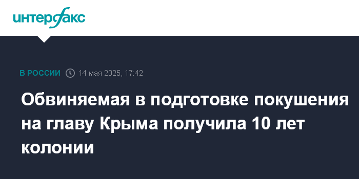 Обвиняемая в подготовке покушения на главу Крыма получила 10 лет колонии