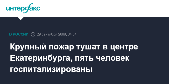 Екатеринбург. 29 сентября. ИНТЕРФАКС-УРАЛ - На улице Малышева в центре Екатеринбурга горит 3-этажное здание, пять человек госпитализированы, сведений о погибших нет.