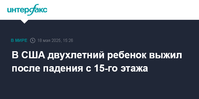 В США двухлетний ребенок выжил после падения с 15-го этажа