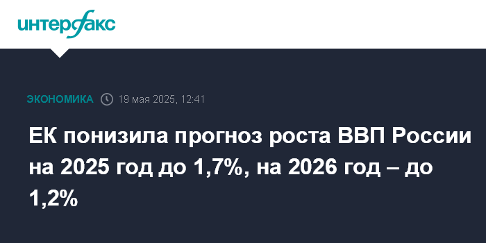 ЕК понизила прогноз роста ВВП России на 2025 год до 1,7%, на 2026 год – до 1,2%