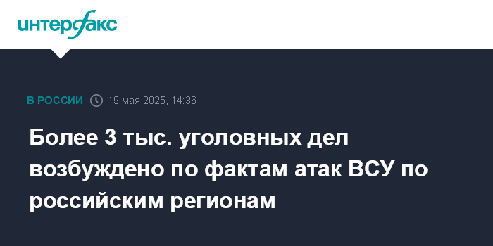 Москва. 19 мая. INTERFAX.RU - Председатель Следственного комитета Александр Бастрыкин сообщил о трех тысячах уголовных дел, возбужденных Следственным комитетом по факту обстрелов ВСУ российских регионов.