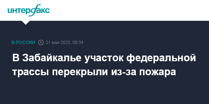 Москва. 21 мая. INTERFAX.RU - В Забайкальском крае из-за лесного пожара закрыли участок федеральной автодороги Иркутск - Улан-Удэ - Чита, сообщает региональное УМВД.