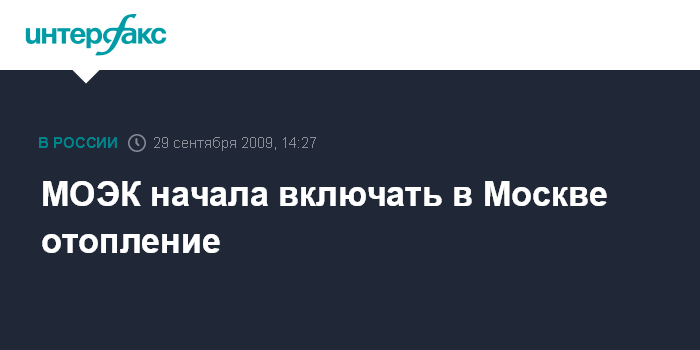 Москва. 29 сентября. INTERFAX.RU - ОАО "Московская объединенная энергетическая компания" (МОЭК) приступило к включению отопления в Москве, говорится в сообщении компании. Включение отопления происходит в соответствии с распоряжением первого заместителя мэра Москвы, руководителя комплекса городского хозяйства Петра Бирюкова. В зону теплоснабжения МОЭК, самого крупного поставщика тепла в столице, на данный момент входит 45 тыс. 174 строения, из которых почти 29 тыс. - жилые здания. Отопительный сезон в Москве впервые начался в сентябре.