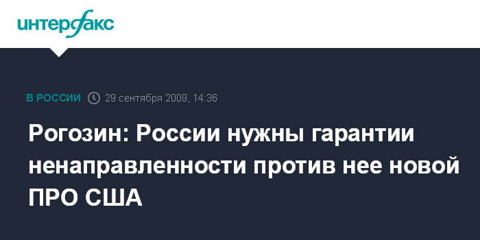 Рогозин: России нужны гарантии ненаправленности против нее новой ПРО США
