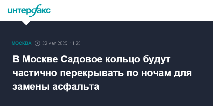 В Москве Садовое кольцо будут частично перекрывать по ночам для замены асфальта