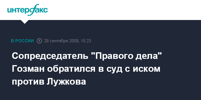 Сопредседатель "Правого дела" Гозман обратился в суд с иском против Лужкова