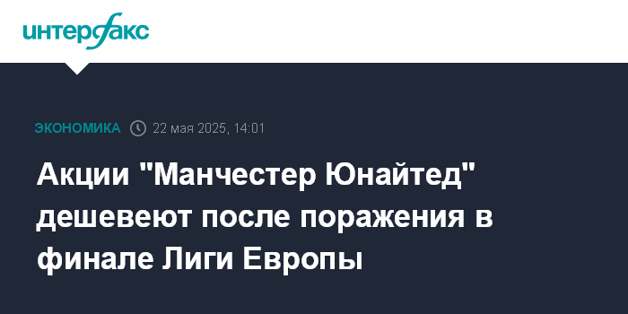 Москва. 22 мая. INTERFAX.RU - Котировки английского футбольного клуба "Манчестер Юнайтед" падают после поражения команды в финале Лиги Европы, лишившего ее еврокубков на следующий сезон.