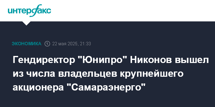 Гендиректор "Юнипро" Никонов вышел из числа владельцев крупнейшего акционера "Самараэнерго"