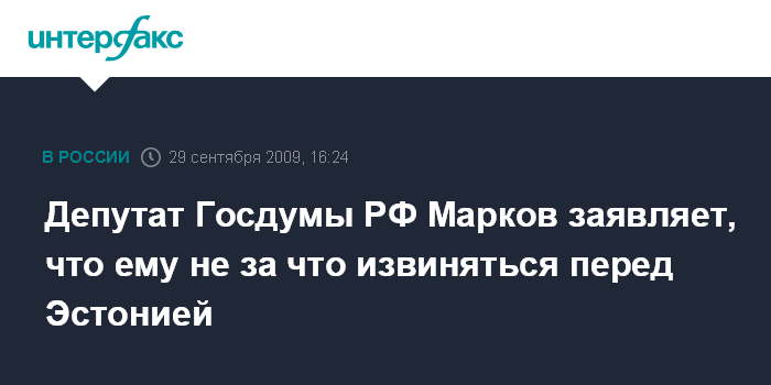 Депутат Госдумы РФ Марков заявляет, что ему не за что извиняться перед Эстонией