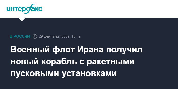 Тегеран. 29 сентября. INTERFAX.RU - Военно-морские силы Ирана спустили на воду во вторник в порту Каспийского моря новый корабль национального производства с ракетными пусковыми установками на борту, сообщают местные СМИ.