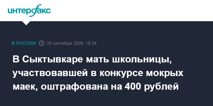 Сыктывкар. 29 сентября. INTERFAX.RU - В Коми оштрафовали мать несовершеннолетней участницы конкурса "Мокрые майки" в сыктывкарском клубе "Немо".