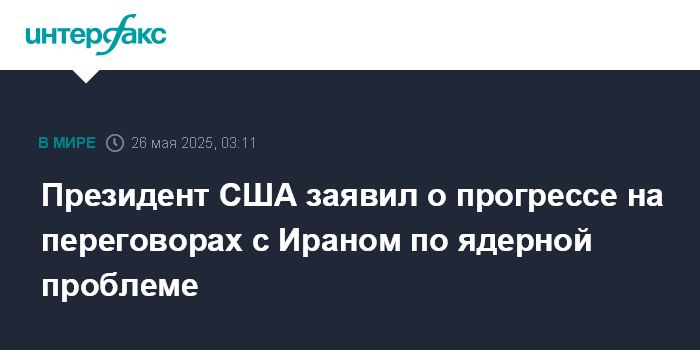 Москва. 26 мая. INTERFAX.RU - Президент США Дональд Трамп выразил оптимизм касательно хода непрямых переговоров между Вашингтоном и Тегераном по иранской ядерной программе, сообщает телеканал CNN.