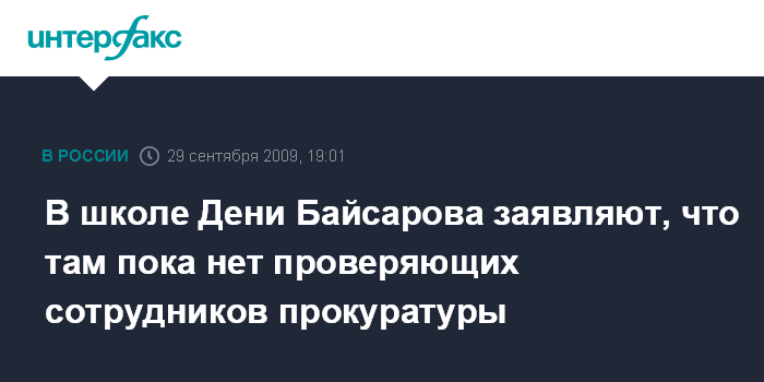 Москва. 29 сентября. INTERFAX.RU - Прокурорская проверка частной школы, в которой учится Дени Байсаров, еще не начиналась, сообщил один из сотрудников учебного заведения.