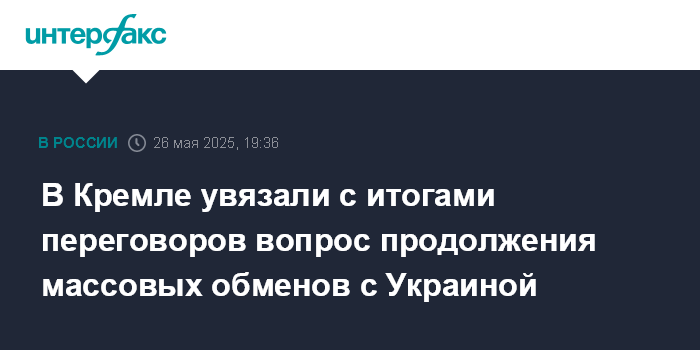 Москва. 26 мая. INTERFAX.RU - Вопрос продолжения массовых обменов в рамках переговорного процесса с Украиной будет зависеть от итогов переговоров, заявил пресс-секретарь президента РФ Дмитрий Песков.