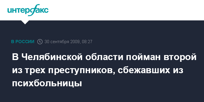 Соколова также добавила, что первый из сбежавших, который был задержан вчера днем у родственников в Челябинске, уже доставлен обратно в психбольницу. Это житель города Бакал, осужденный по статье 111 УК РФ (нанесение телесных повреждений).
