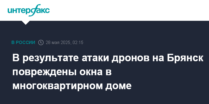 В результате атаки дронов на Брянск повреждены окна в многоквартирном доме