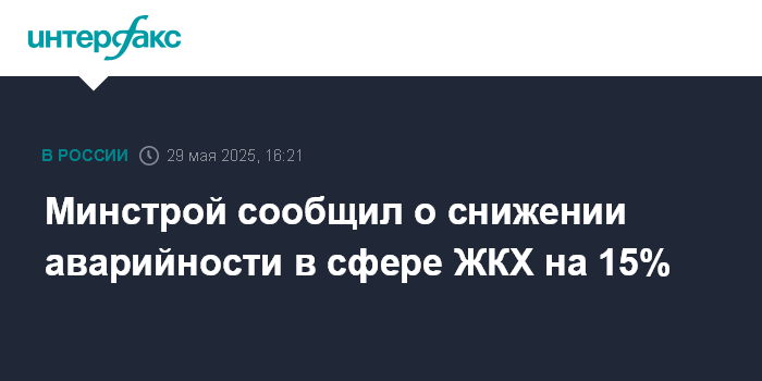 Москва. 29 мая. INTERFAX.RU - Аварийность в сфере жилищно-коммунального хозяйства в России снизилась на 15%, сообщил министр строительства и ЖКХ РФ Ирек Файзуллин в четверг.