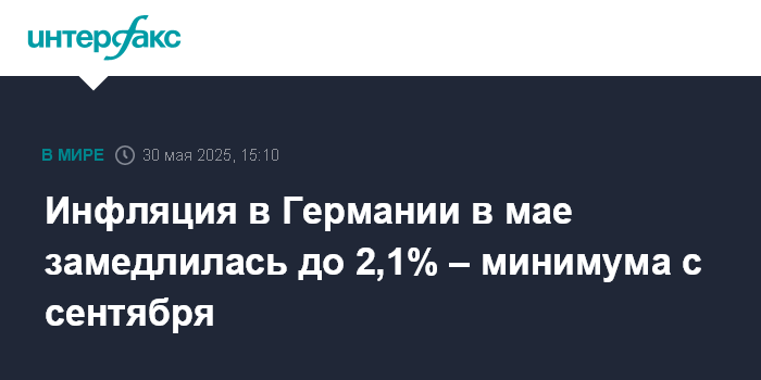 Инфляция в Германии в мае замедлилась до 2,1% – минимума с сентября