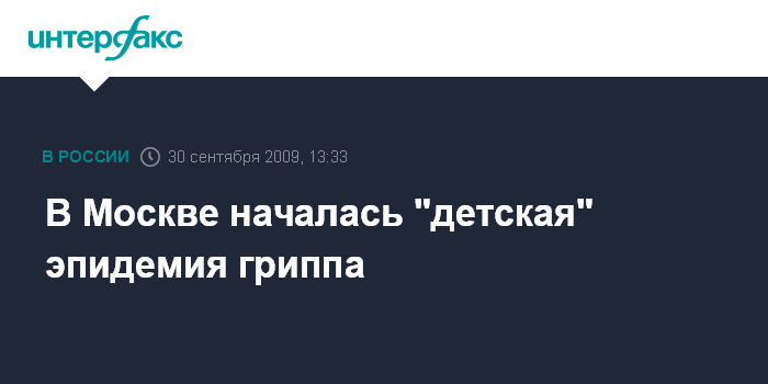 Москва. 30 сентября. INTERFAX.RU - В Москве зарегистрировано превышение порогового уровня заболеваемости ОРВИ и гриппом среди детей и подростков, сообщили "Интерфаксу" в столичном управлении Роспотребнадзора в среду.