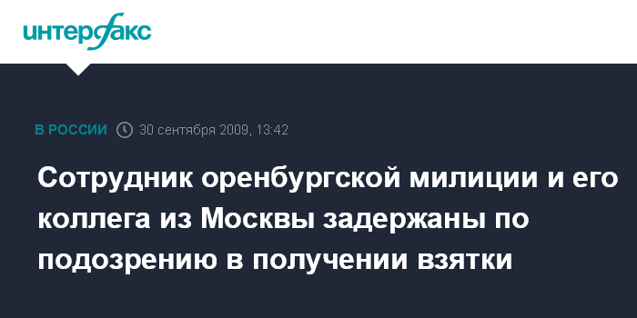 Сотрудник оренбургской милиции и его коллега из Москвы задержаны по подозрению в получении взятки