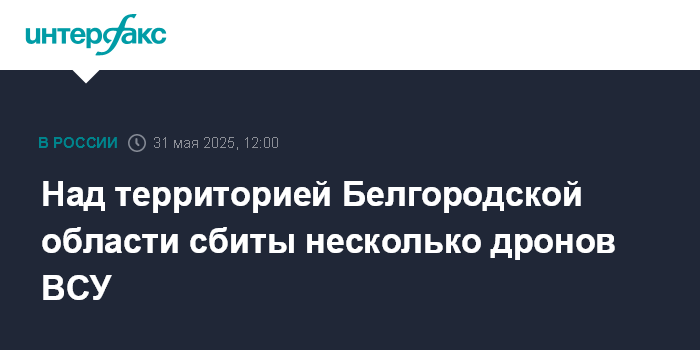 Москва. 31 мая. INTERFAX.RU - Российские военные в субботу сбили три украинских беспилотника самолетного типа в небе над Белгородской областью, сообщили в Минобороны РФ.