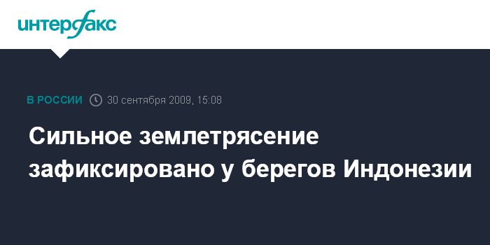 Москва. 30 сентября. INTERFAX.RU - Землетрясение мощностью в 7,6 балла произошло в среду у побережья Индонезии, сообщает местное агентство по геофизике и метеорологии. Эпицентр расположен близ острова Суматра. По словам экспертов, угрозы возникновения цунами нет. Сообщения о жертвах и разрушениях пока не поступали.