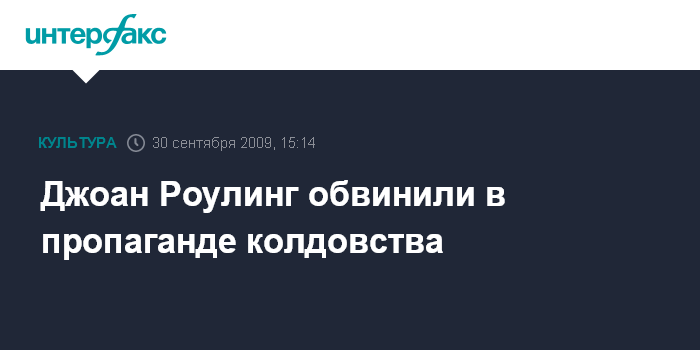 Москва. 30 сентября. INTERFAX.RU – Джоан Роулинг, автор серии книг про волшебника Гарри Поттера, не удостоилась высшей почетной награды США, так как, по мнению некоторых американских политиков, писательница в своих произведениях "пропагандирует колдовство". Как сообщает BBС, именно поэтому Роулинг так и не получила "Президентскую медаль свободы" (Presidential Medal of Freedom). Об этом в своей книге "Безмолвный: Сказания выжившего в Белом доме" рассказал бывший спичрайтер экс-президента США Джорджа Буша Мэтт Латимер.