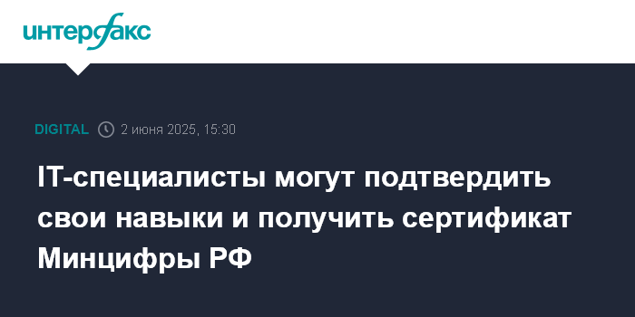 Москва. 2 июня. INTERFAX.RU - Национальная система подтверждения IT-компетенций, в которой специалисты могут подтвердить свои навыки и получить сертификат Минцифры, начала свою работу, говорится в сообщении пресс-службы министерства.