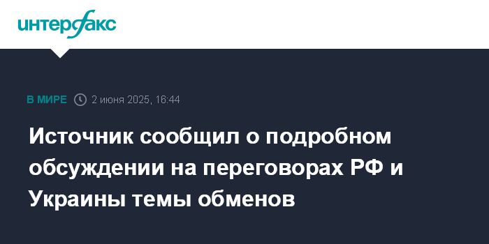 Москва. 2 июня. INTERFAX.RU - В ходе российско-украинских переговоров в Стамбуле обсуждались обмены, сообщил "Интерфаксу" собеседник, знакомый с их организацией.