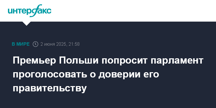 Москва. 2 июня. INTERFAX.RU - Премьер-министр Польши Дональд Туск намерен попросить парламент провести голосование о доверии его правительству, сообщают европейские СМИ.