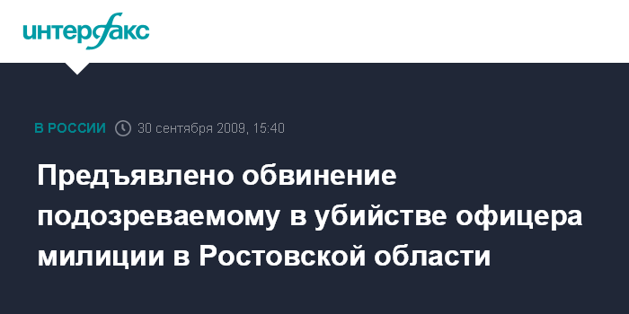Предъявлено обвинение подозреваемому в убийстве офицера милиции в Ростовской области