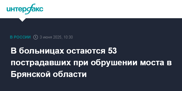 В больницах остаются 53 пострадавших при обрушении моста в Брянской области