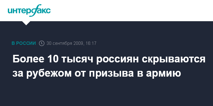 Москва. 30 сентября. INTERFAX.RU - Более 100 тысяч призывников уклоняется от военной службы в ходе призывных кампаний, заявил замначальника Генштаба, генерал-полковник Василий Смирнов. "Более 10 тысяч российских граждан призывного возраста находится сейчас за рубежом, не могут быть призваны на военную службу, хотя в соответствии с законом "О воинской обязанности и военной службе" они обязаны выполнить свой конституционный долг", - сказал В.Смирнов в среду журналистам в Москве.