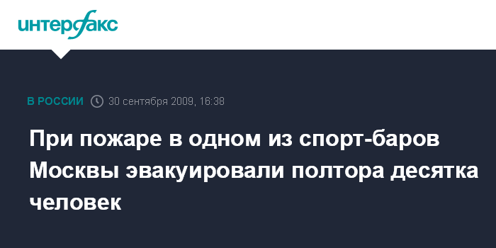При пожаре в одном из спорт-баров Москвы эвакуировали полтора десятка человек