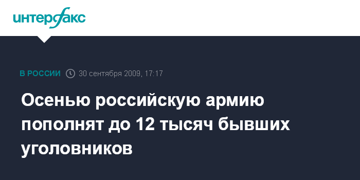 Москва. 30 сентября. INTERFAX.RU - Замначальника Генштаба, генерал-полковник Василий Смирнов заявил, что в ходе осеннего призыва будут призываться новобранцы с так называемым уголовным прошлым. "Порядка 10-12 тыс. граждан, имевших судимость, будут призваны в ходе осенней призывной кампании в Вооруженные силы", - сказал Смирнов в среду журналистам в Москве, отвечая на вопрос "Интерфакса-АВН". По его мнению, учитывая масштабы осеннего призыва, количество призывников, имеющих уголовный опыт, не скажется на моральном климате воинских коллективов.