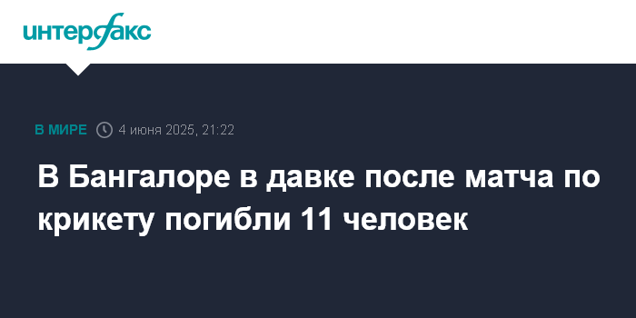 Москва. 4 июня. INTERFAX.RU - В Индии давке у стадиона в городе Бангалор погибли 11 человек, еще 33 получили травмы, пишет Hindustan Times со ссылкой на главного министра штата Карнатака Сиддарамайю.