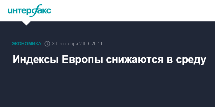 Лондон. 30 сентября. INTERFAX.RU - Фондовые индексы Европы снижаются в среду на негативной статистике из США, сообщило агентство Bloomberg.