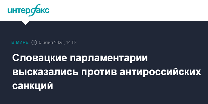 Москва. 5 июня. INTERFAX.RU - Депутаты парламента Словакии одобрили резолюцию об отмене санкций в отношении России, сообщают в четверг словацкие СМИ.