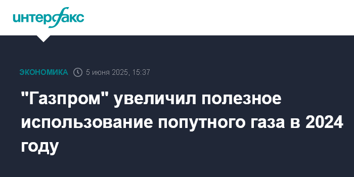 Москва. 5 июня. INTERFAX.RU - Показатель полезного использования попутного нефтяного газа (ПНГ) по Группе "Газпром" составил в 2024 году 96,1 %, увеличившись на 1,4 процентных пункта, говорится в материалах компании.