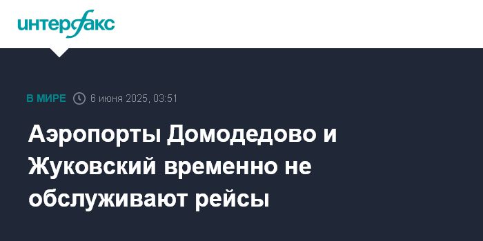 "Для обеспечения безопасности полетов гражданских воздушных судов временные ограничения на их прием и выпуск введены в аэропортах Домодедово и Жуковский (Раменское)", - написал он в своем телеграм-канале в пятницу.