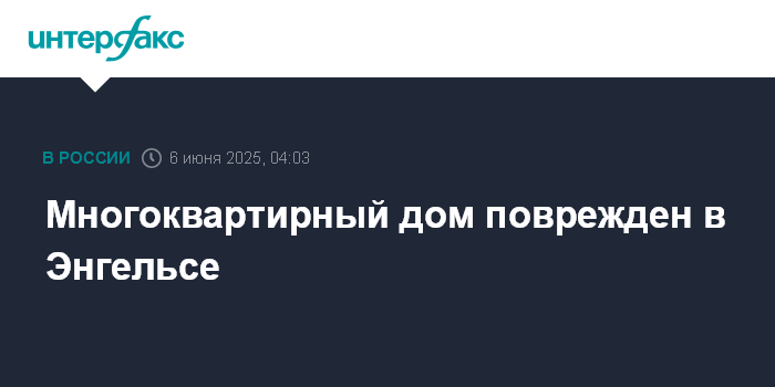 Москва. 6 июня. INTERFAX.RU - Губернатор Саратовской области Роман Бусаргин сообщил о повреждении многоквартирного дома в Энгельсе, никто не пострадал.