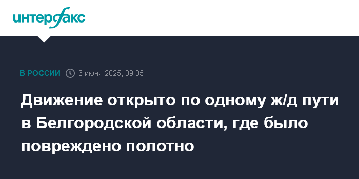 Движение открыто по одному ж/д пути в Белгородской области, где было повреждено полотно