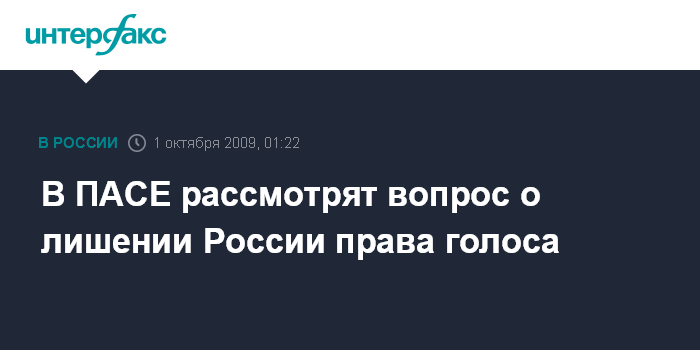 Страсбург. 1 октября. ИНТЕРФАКС - Вопрос о лишении российской делегации полномочий в Парламентской ассамблее Совета Европы из-за позиции Москвы в отношении Грузии, Абхазии и Южной Осетии будет рассмотрен в четверг.
