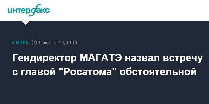 Москва. 6 июня. INTERFAX.RU - Встреча с гендиректором "Росатома" Алексеем Лихачёвым по вопросам ядерной энергетики позволила провести обстоятельный обмен мнениями по ситуации на Запорожской АЭС, сообщил в пятницу гендиректор МАГАТЭ Рафаэль Гросси.