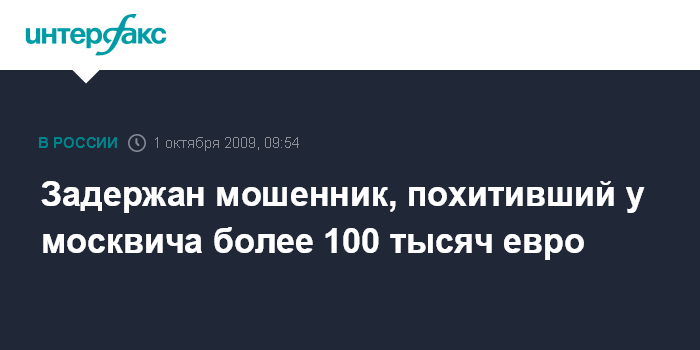 Задержан мошенник, похитивший у москвича более 100 тысяч евро