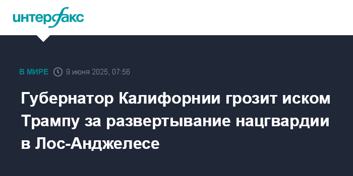 Губернатор Калифорнии грозит иском Трампу за развертывание нацгвардии в Лос-Анджелесе